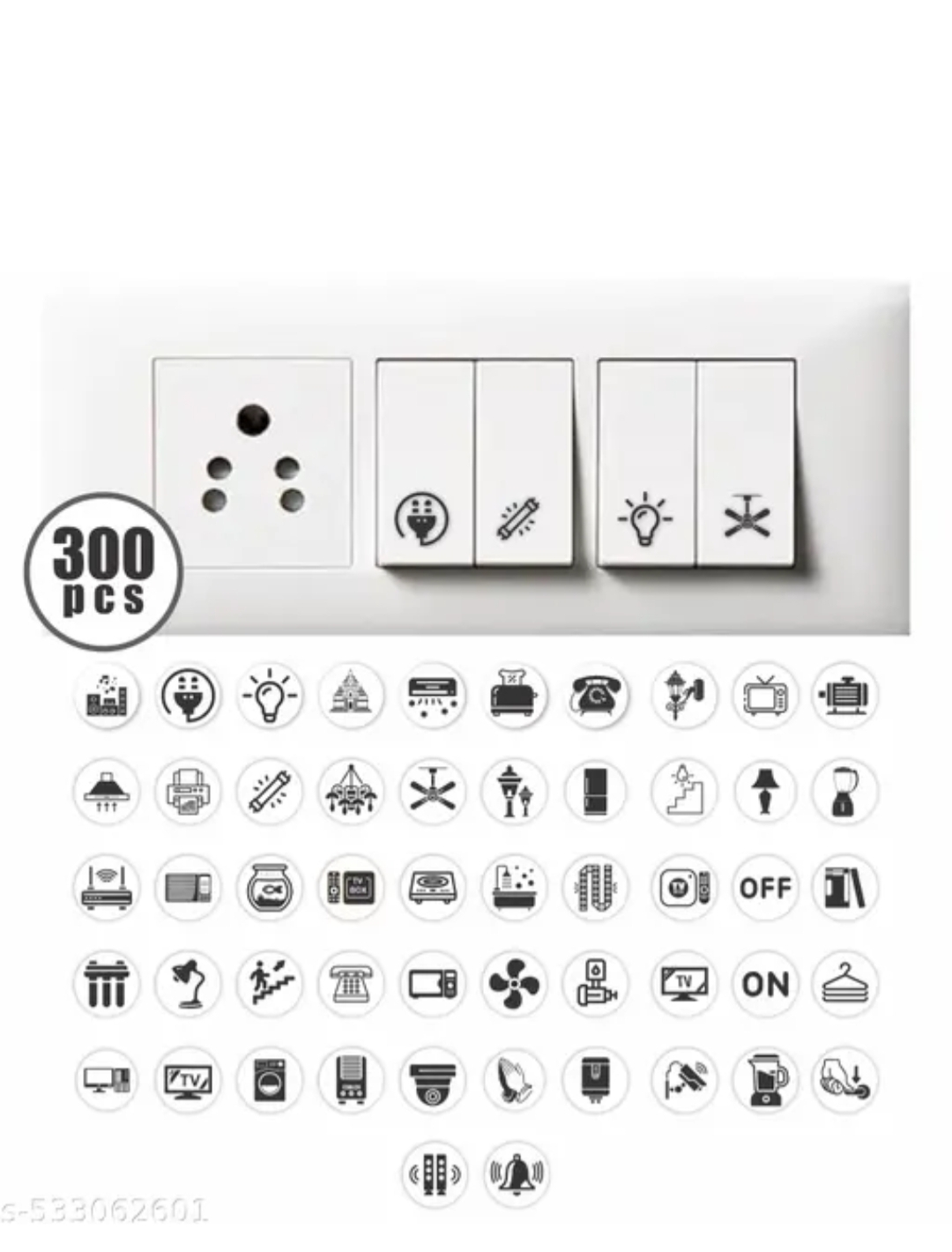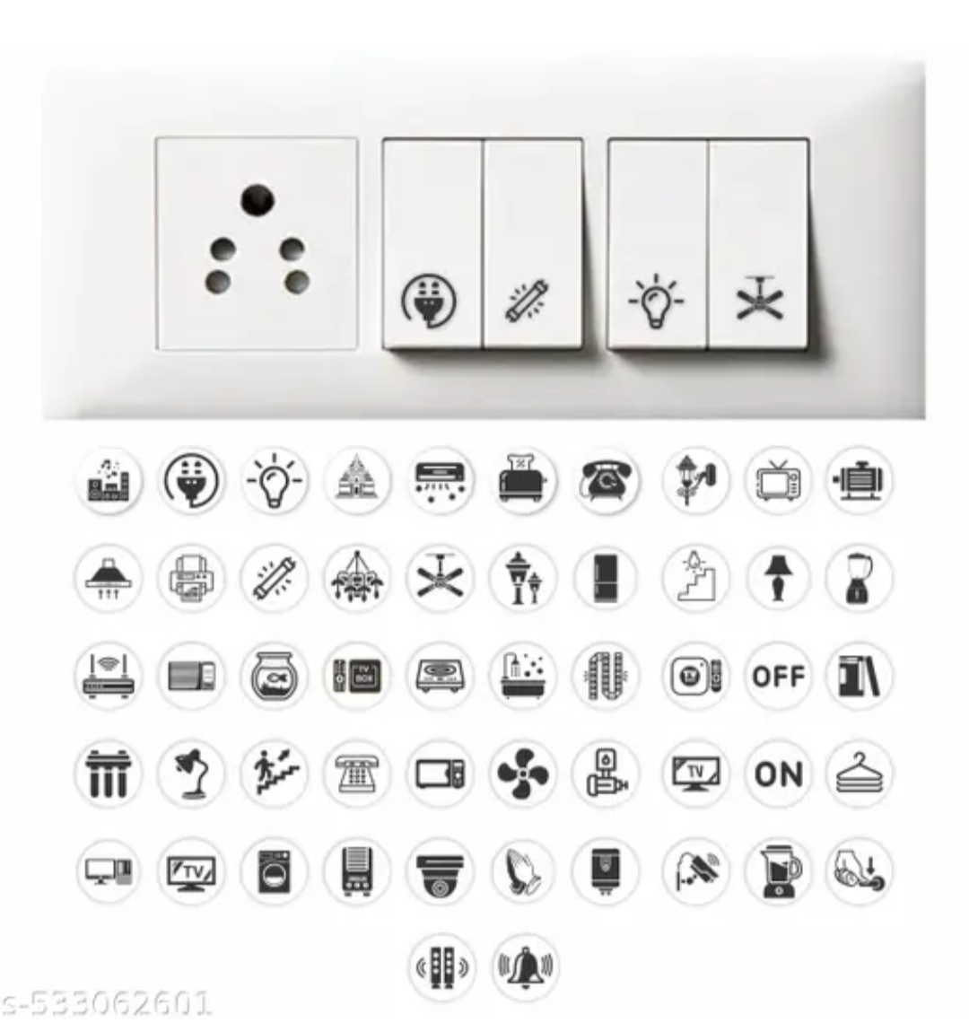 Transparent switch id sticker for switch boards,52 designs pack of 300